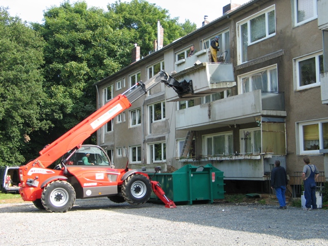 Zum Ende der gröbsten Abrissarbeiten im 1. Bauabschnitt wurde am 31.07.2009 mit Würstchen, Schnitzeln und kühlem Altbier mit den Bewohnern Halbzeit gefeiert. Nachdem planmäßig das Dachgeschoss und die Balkone abgetragen wurden, können nun in der zweiten Halbzeit die neuen Balkonsysteme montiert und das Staffelgeschoss gebaut werden.
