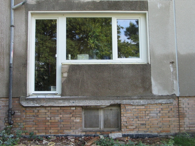 Im zweiten Bauabschnitt werden zur Zeit die Vorbereitungen für den Einbau der neuen Zentralheizungsanlage getroffen. Die Kellerräume werden in Container hinter dem Haus ausgelagert und die Fenster werden ausgetauscht.