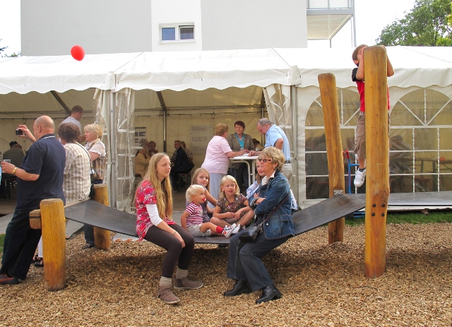Schon jetzt werden die neu gestalteten Außenanlagen, insbesondere der schöne Spielplatz von den Kindern auf "Herz und Nieren" getestet.